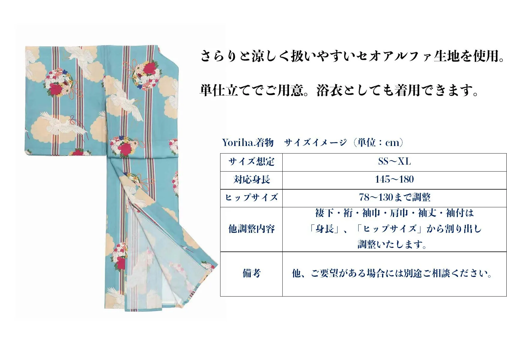 ●「身長」、「ヒップサイズ」から単衣着物を仕立てます。