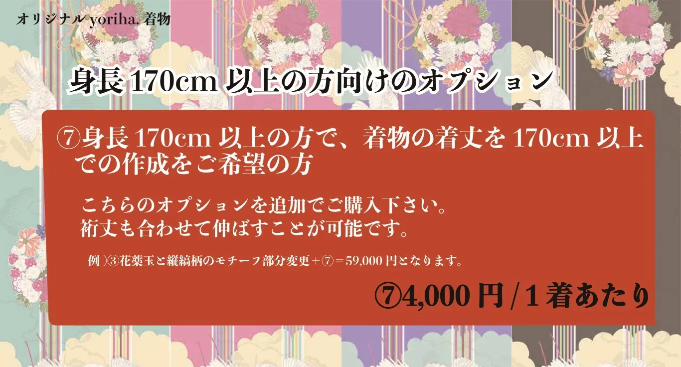 ⑦身長170㎝以上の方で、着物の着丈を170㎝以上での作成をご希望の方へ