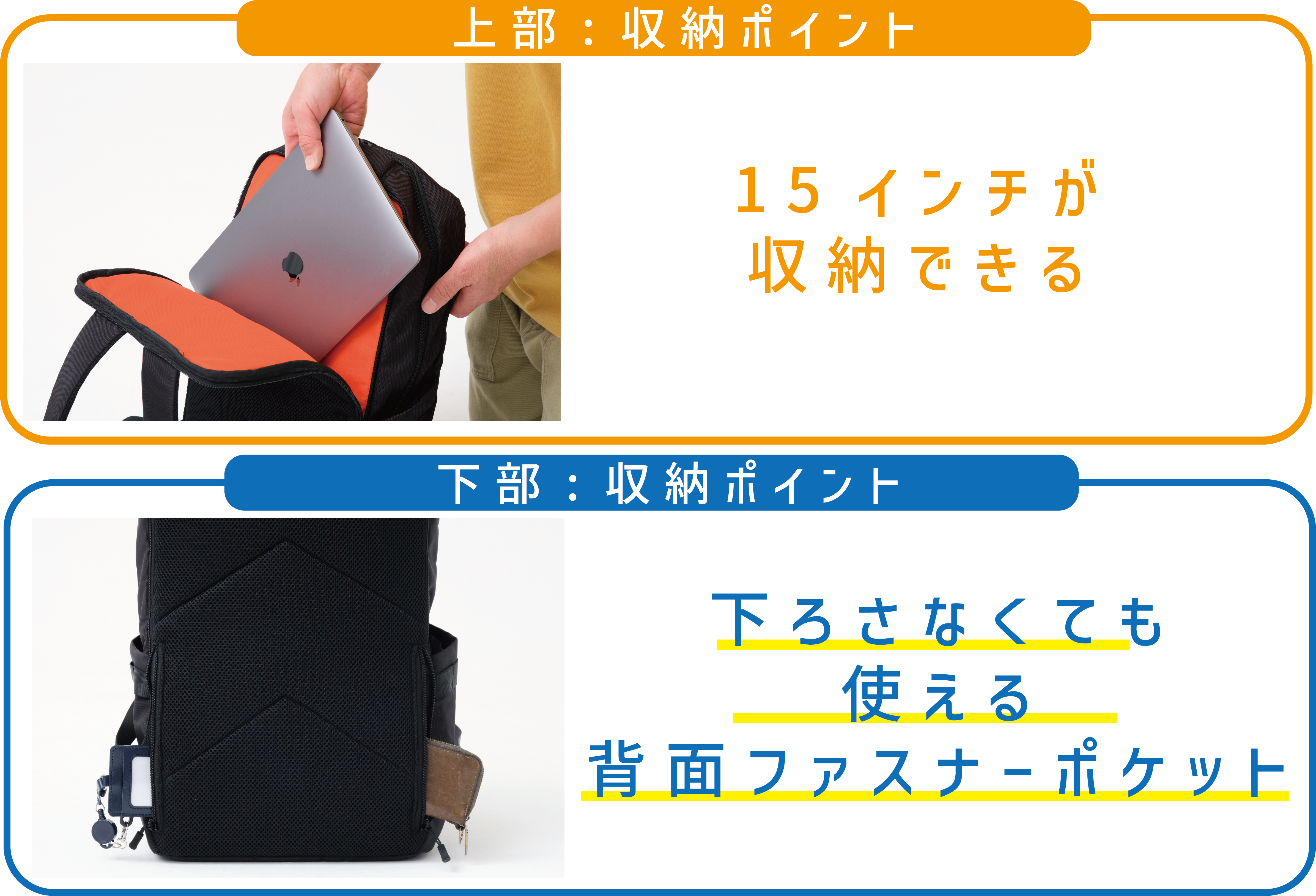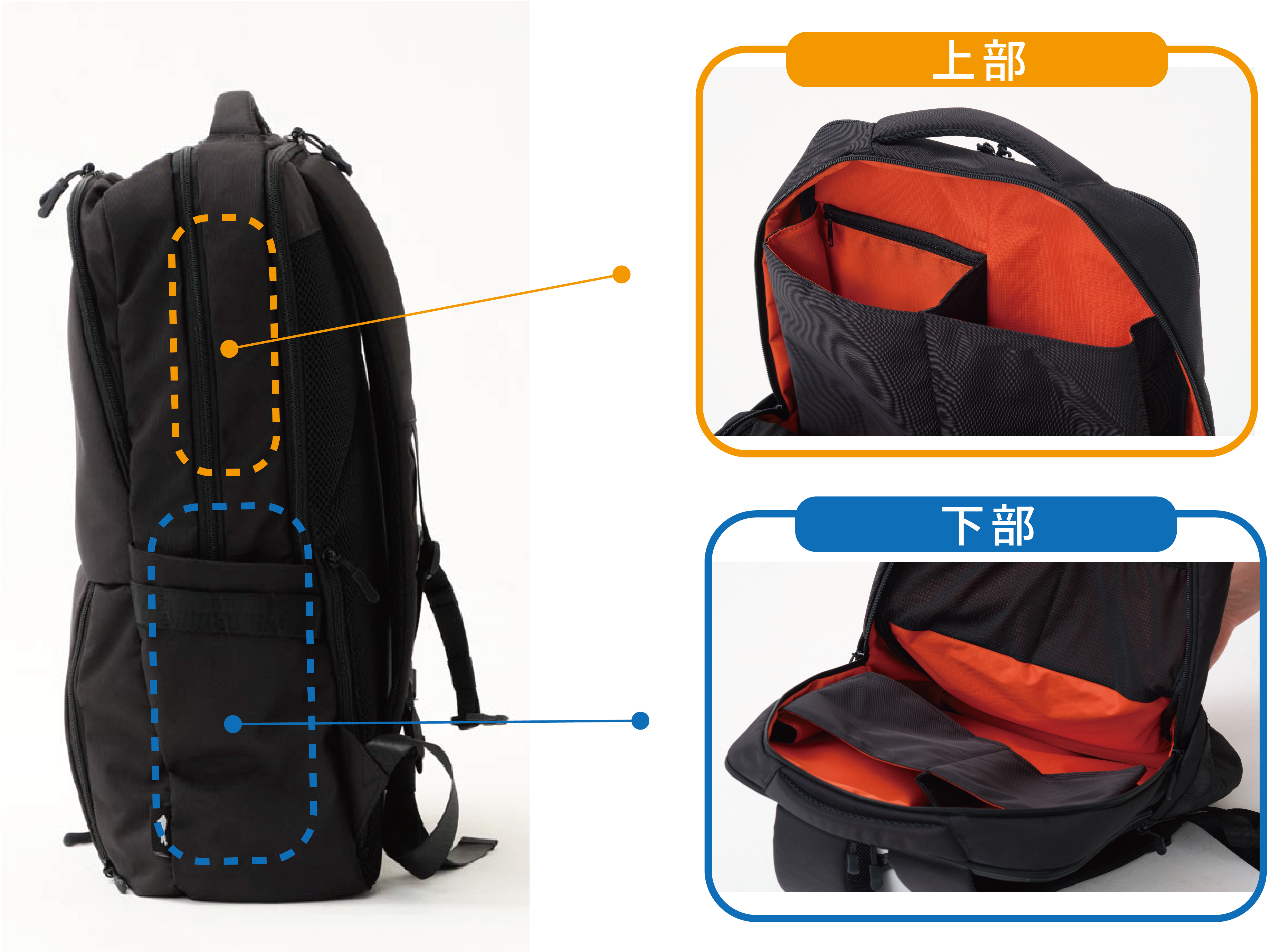 「KABAG」の強みといえば、収納力と整理整頓術。まさに今回のバッグも上下のスペースを有効活用できるようにこだわり抜きました。