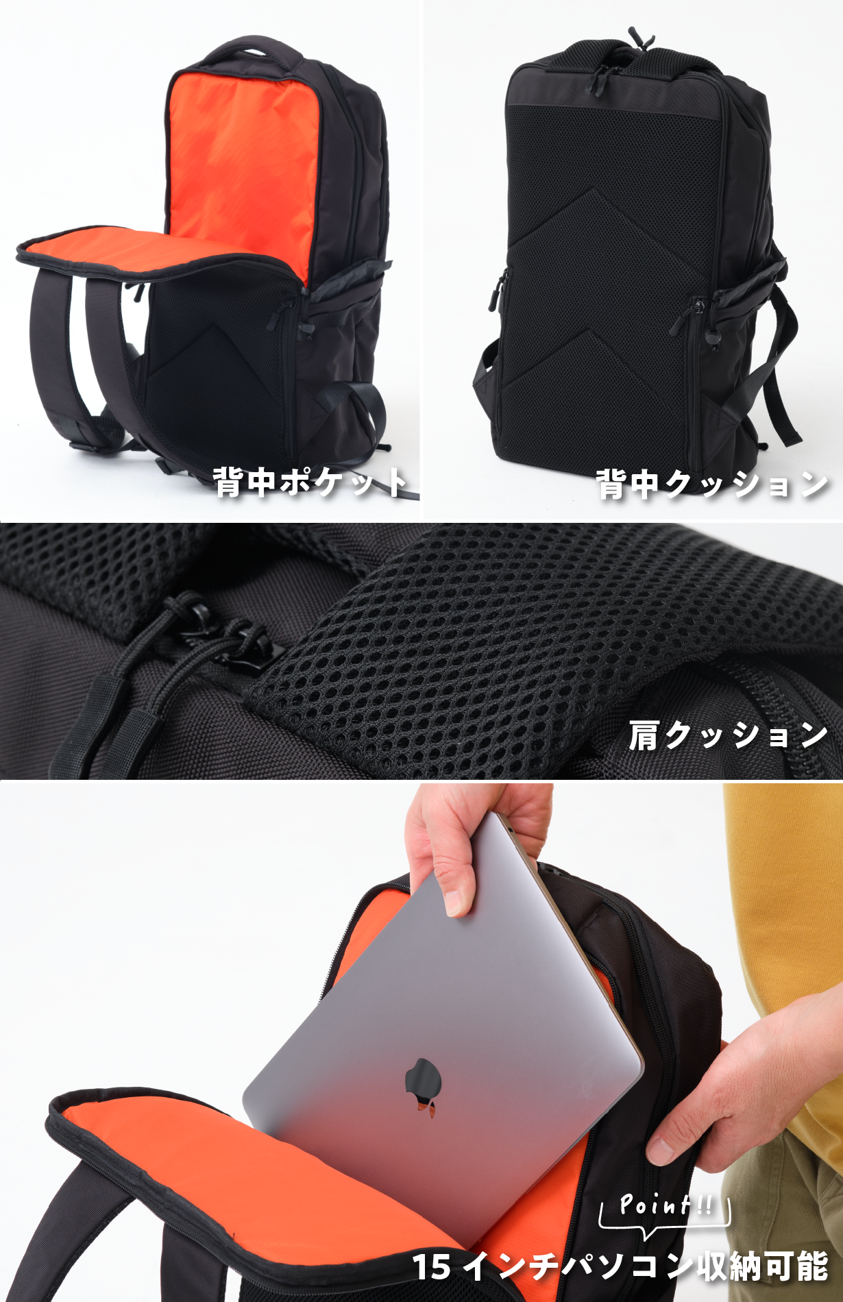 背中には、ノートパソコンやタブレットを安全に守ってくれるポケットをつけました。