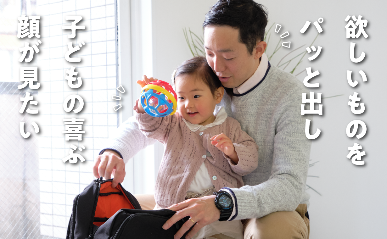 「マザーズバッグはあるのに、ファザーズバッグはない...。パパも子育てのためのバッグを持って、もっと協力して楽しみたいです!」