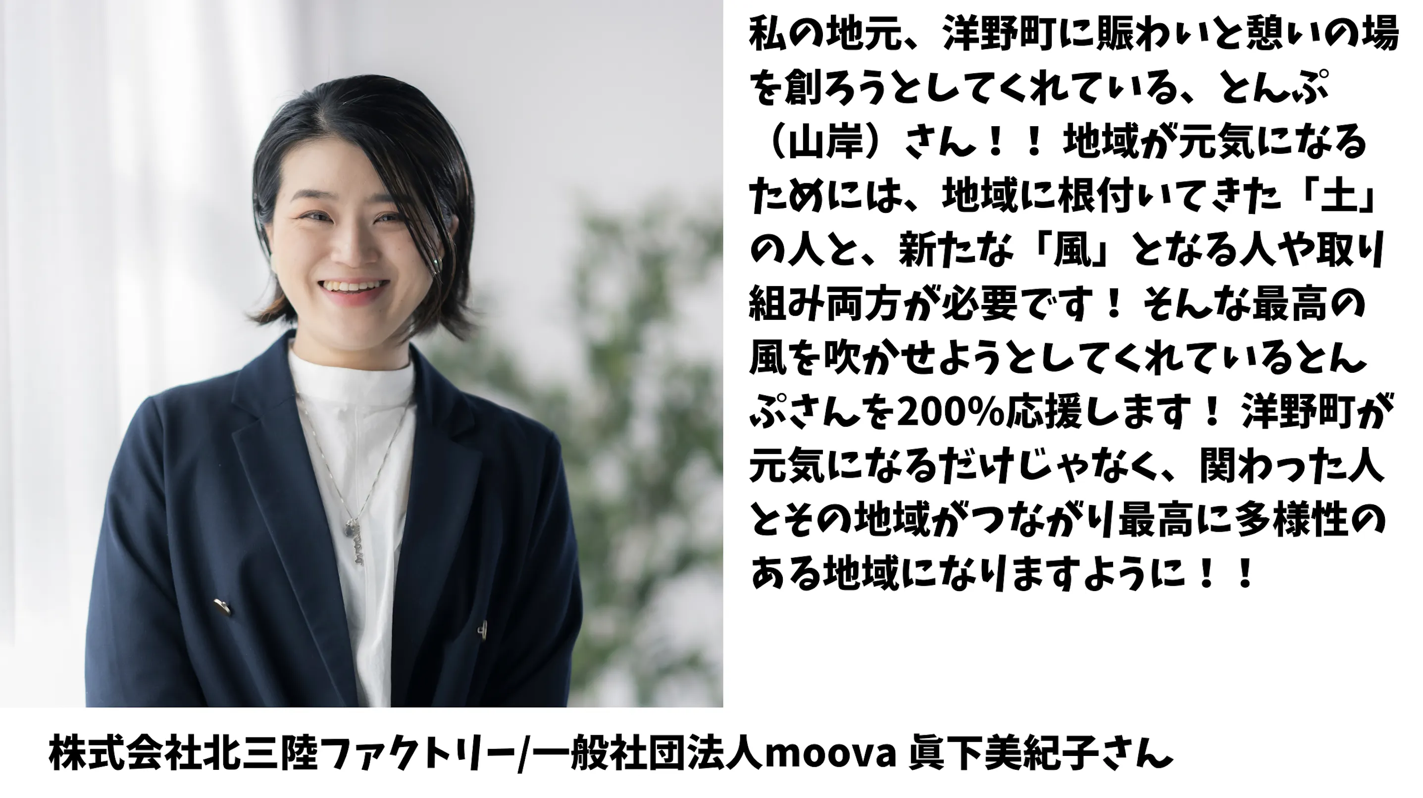 私のように、時間に追われながらせかせか生活していた人も多いと思います。そういった人たちにこそ、洋野町を知ってもらい、一度来てもらえたらと思います。