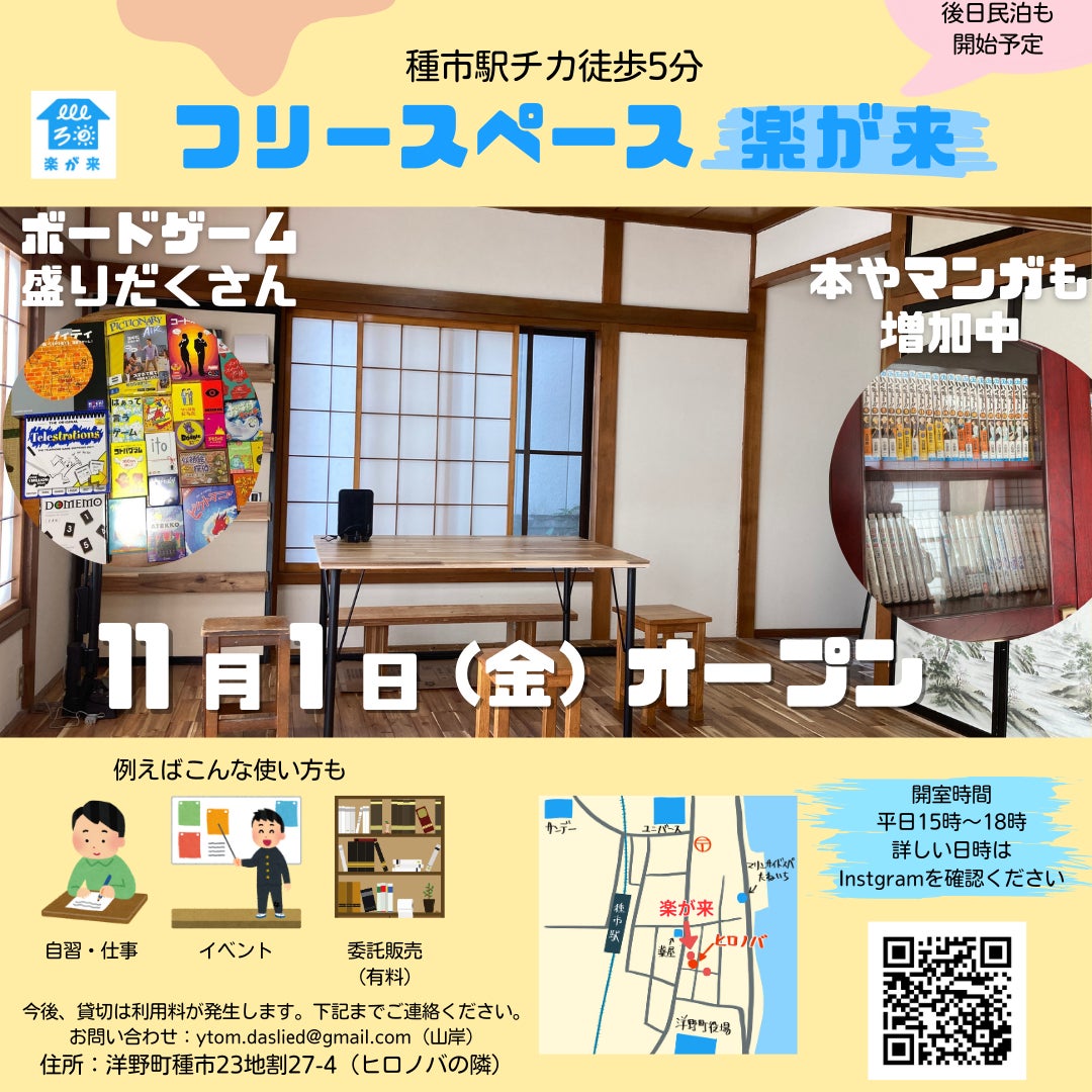 11月1日より、空き家を交流や仕事、勉強のためのフリースペースとして開放し始めました!