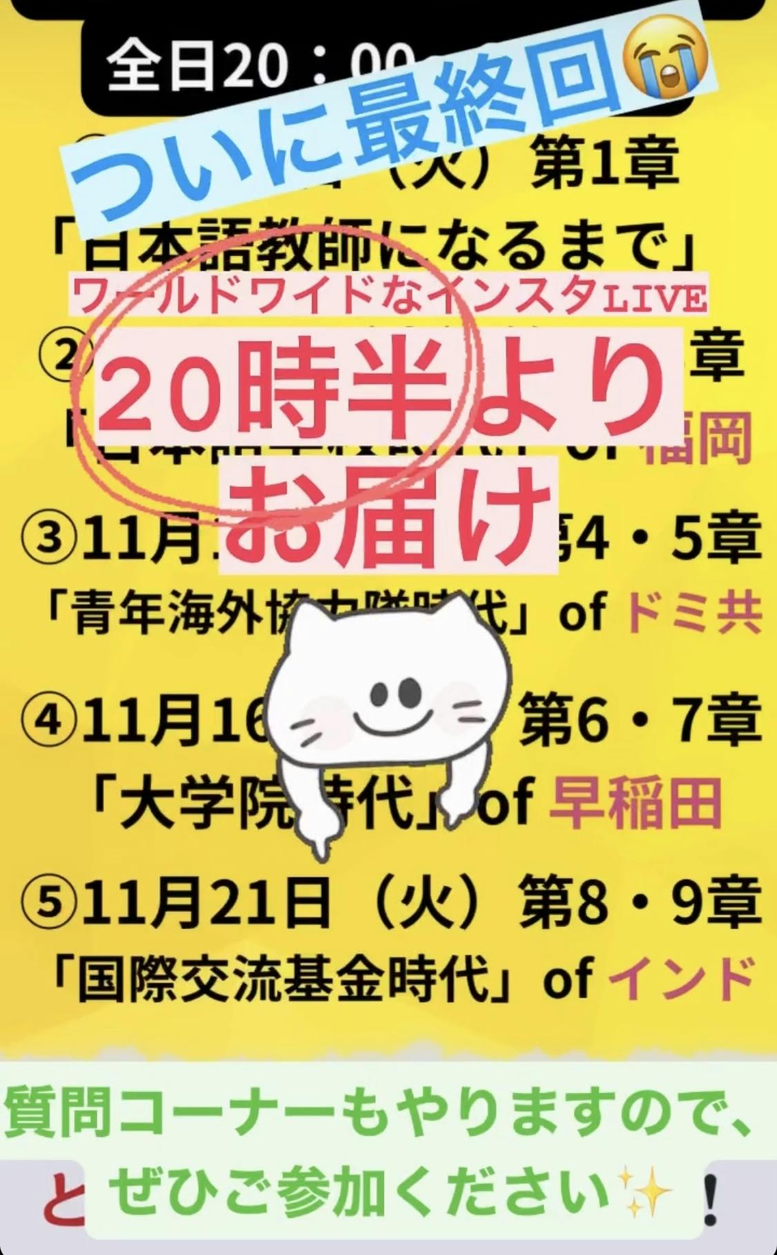 そして!インスタLIVEが今夜最終回を迎えます!最後にして最大の回となるかも?!果たして接続はうまくいくのか(私自身が一番心配しています笑)。