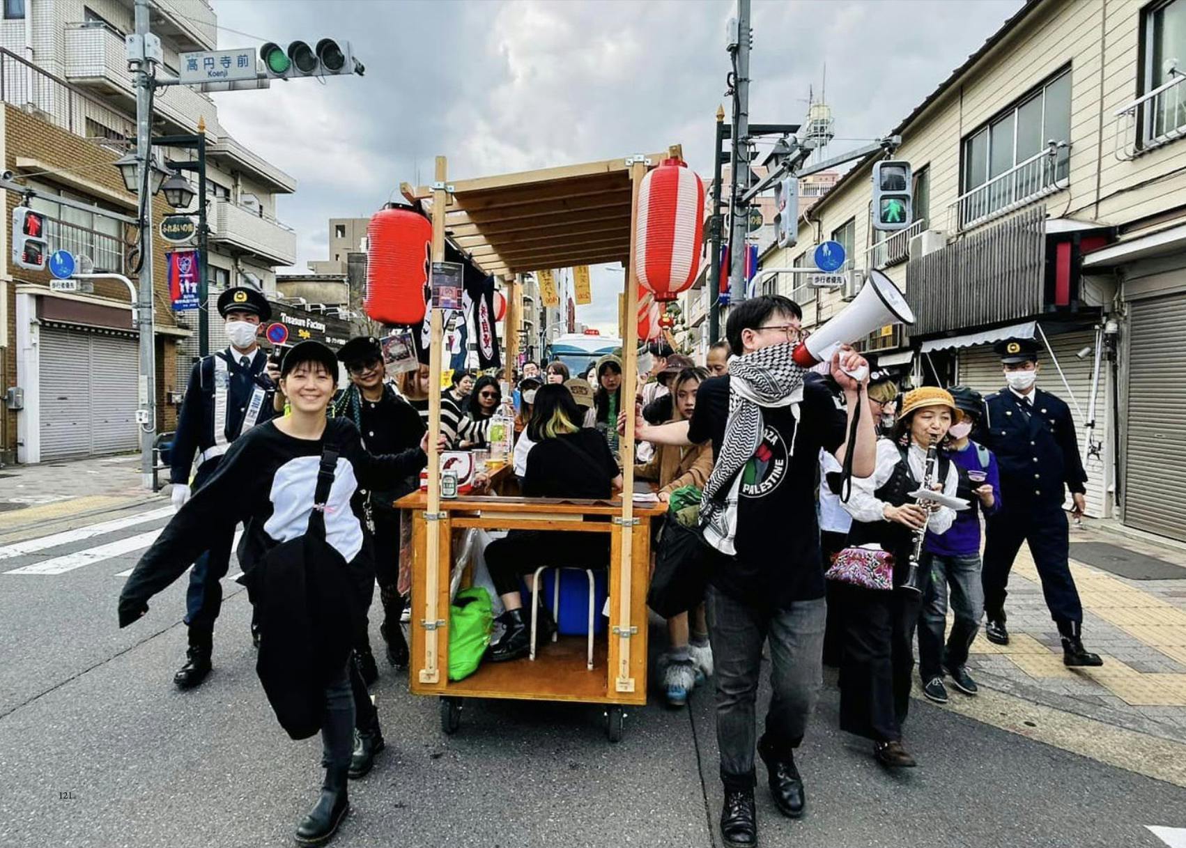 SAVE KOENJI :Andhika Faisal/ Jacob MacCann/ Young Hama/ 16 Hon/ Camfee Zeng: 個性豊かな小さなお店や独特な文化が溢れ親しまれている東京杉並区の高円寺が黙っていたら再開発されてしまうかも。そんな計画はいらないよ!と区や都にわかってもらうために、先手必勝で声を上げる「高円寺再開発反対デモ」の写真。