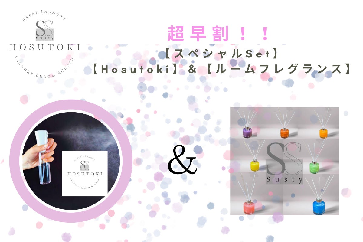 スペシャルセット: 干す時専用ミスト【Hostoki】とリードディフューザーの限定セットを特別価格でご提供。数量限定