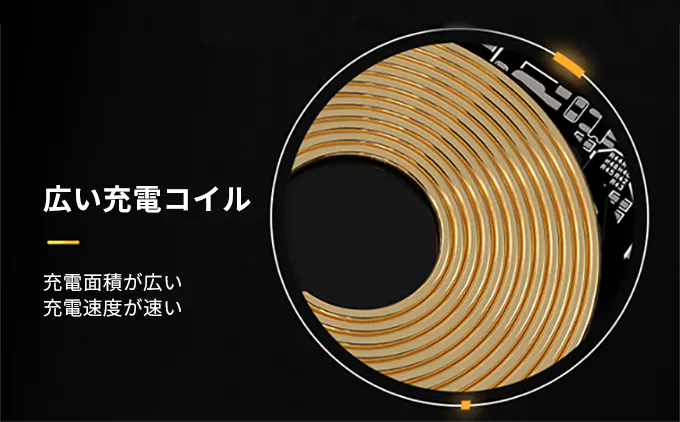 充電コイルの面積が広いため、充電面積を広げ、充電速度を向上させる。