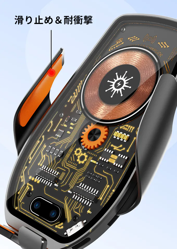 車載ホルダーのパネルはガラス製なので、充電中の発熱を抑えることができます。