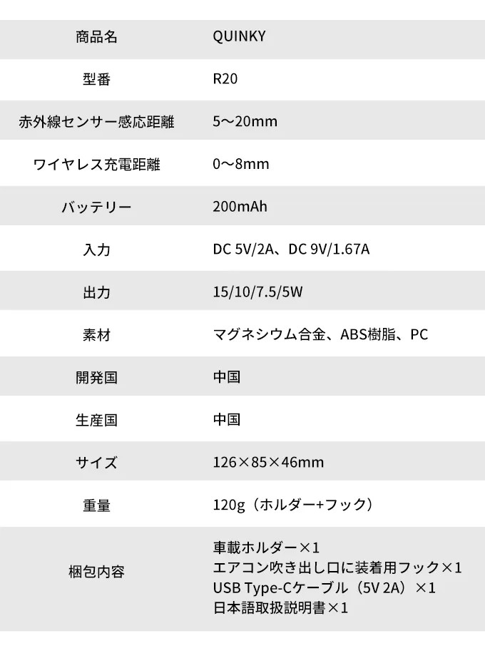 また、 iPhone 13/12 miniやAndroid機種の場合、QUINKYは自動的に機種を認識し、15/10/7.5/5Wの出力で充電します。