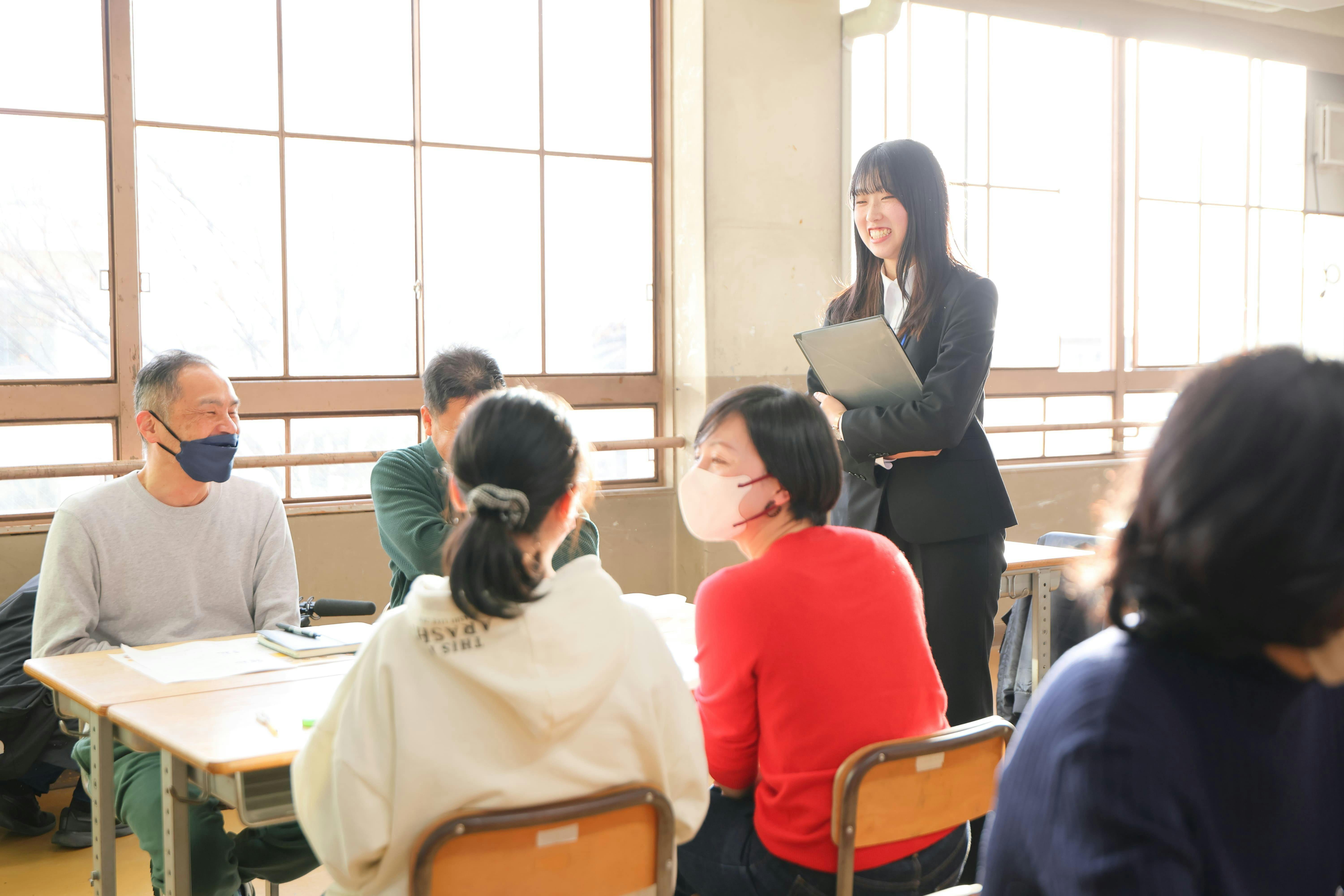 また、吃音がきっかけで色々な障がいについて興味を持ち始め、「特別支援学校の先生になりたい」という思いを強く抱くようになりました。みなさんには私だけではなく、吃音があっても先生の夢をもつ学生に、号令に時間がかかる教室を通して自信をつけるサポートをお願いしたいと思っております。