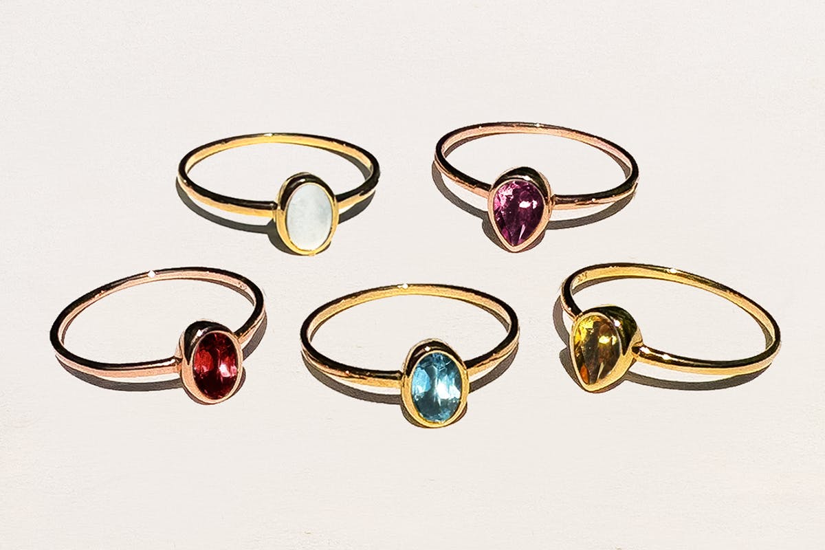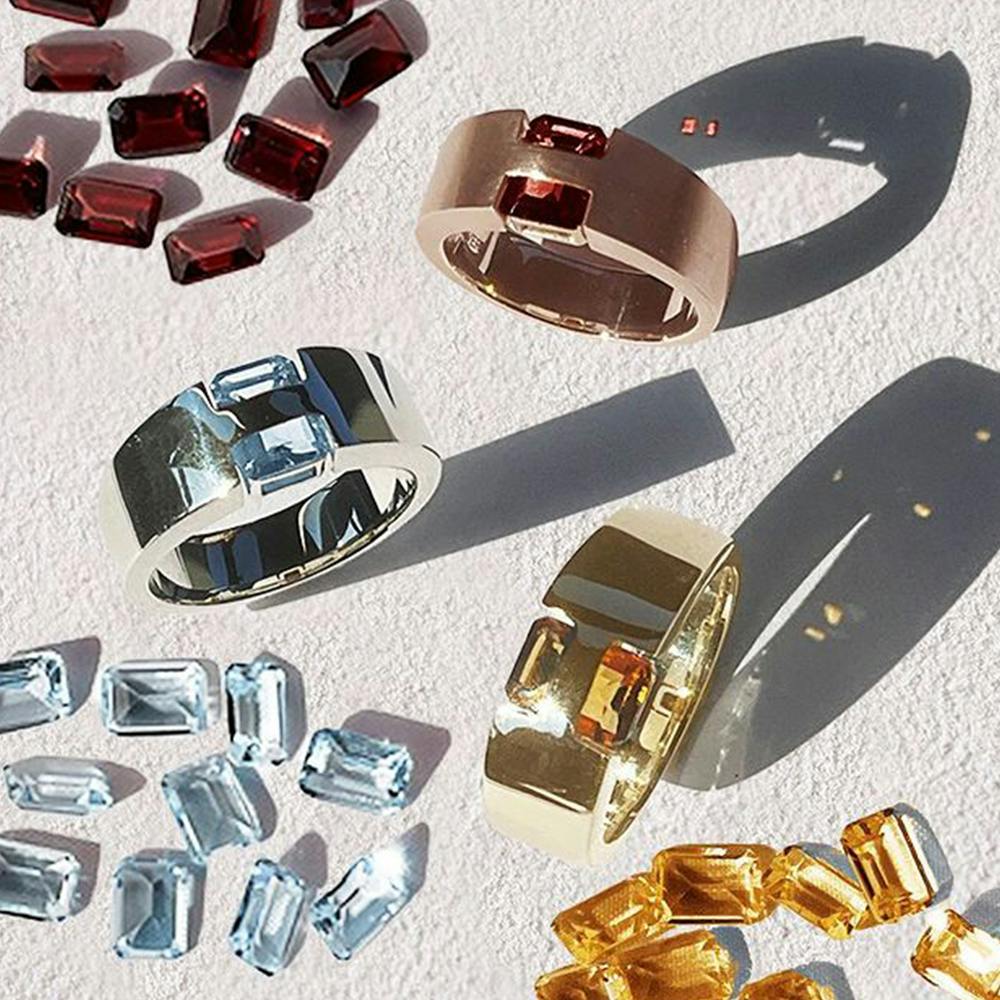今回の指輪では、5種類の宝石、2通りのカッティング、そして地金のトーンも2種類からセミオーダーできます。