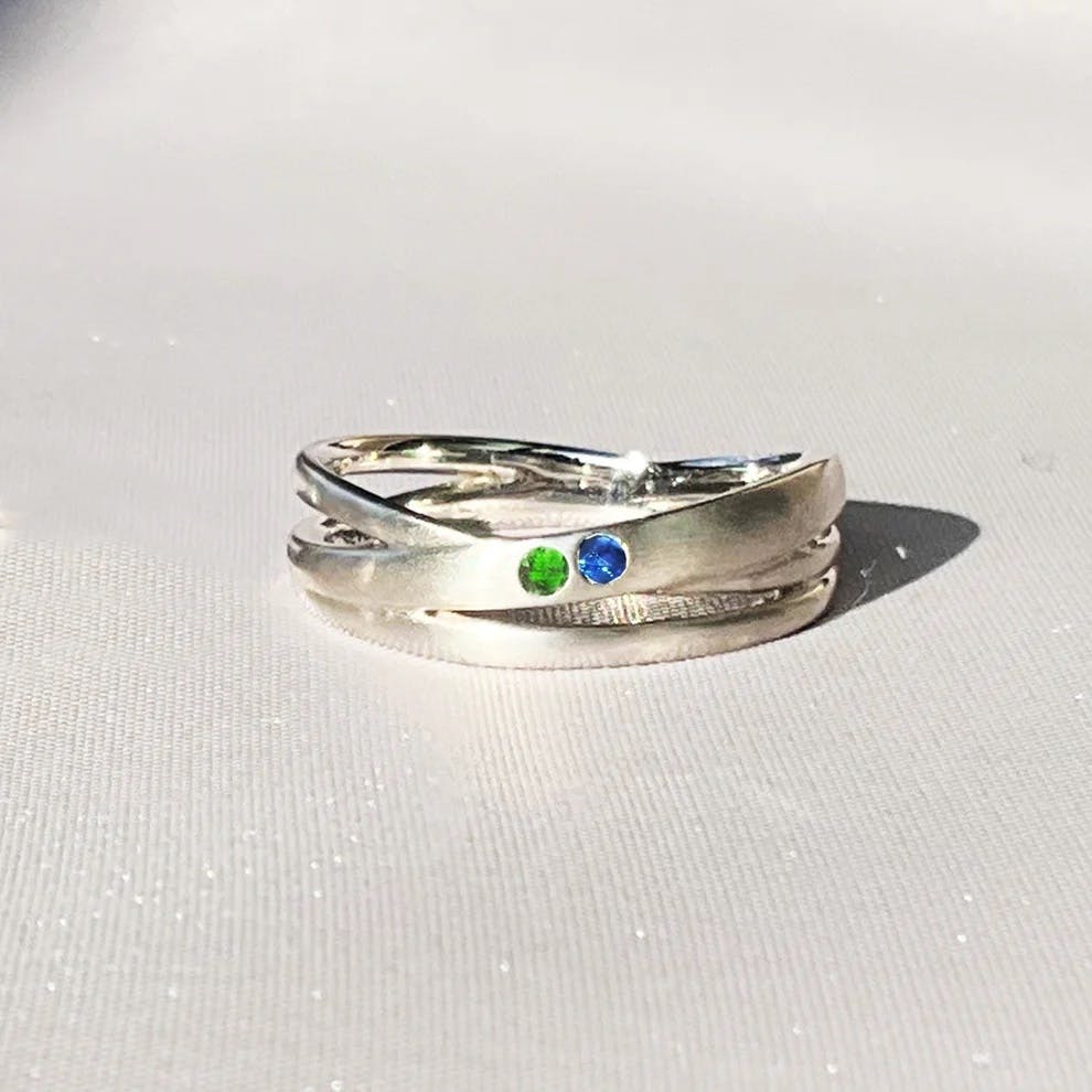 特に寒色系の宝石がお好きとのことで、サファイアの隣にはクロムダイオプサイトを組み合わせてオーダーいただきました。