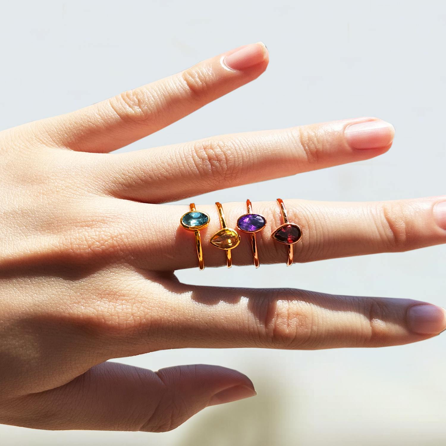 古来から脈々と受け継がれてきた王道かつスタンダードなデザインを採用。シンプルで細めのリング、そして大ぶりの鮮やかな宝石。誰もが身に着けやすいデザインに仕上げています。