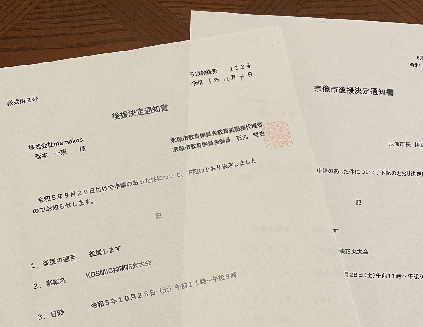 みんなの笑顔のために、10/28に福岡県宗像市の「玄海横丁」で花火と音楽の無料イベント「KOSMIC神湊花火大会」を開催します!音楽の力、エンタメの力、みんなで花火大会を作ろう!家族・友達・恋人との思い出作りをしましょう〜!