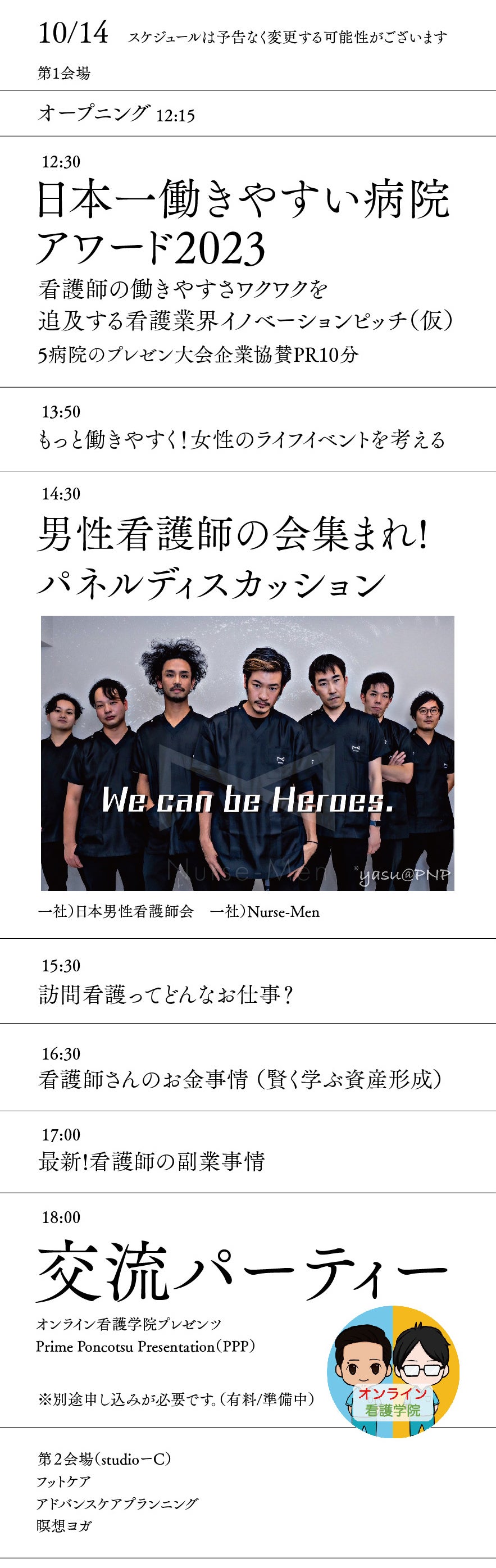 2023年10月14日(土)12:00~20:00 (展示ブースは18:00まで)
