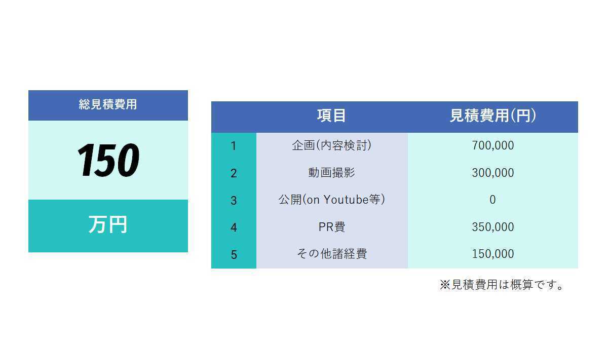 PR無しでは動画を広めることはできないと考えている為、PR費を項目の中に入れております。どのような媒体でPRするかは今後検討していきます。