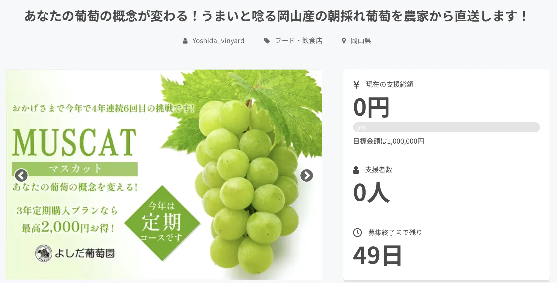 本日からシャインマスカットのクラウドファンディングがスタートしました!