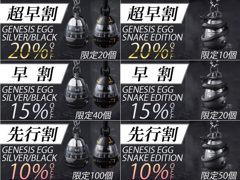 GENESIS EGGを日本に広めるために先行販売としてお届けします。ご支援いただいた資金は広告費に充て一般販売に向けて認知度を高めていきたいと考えています。