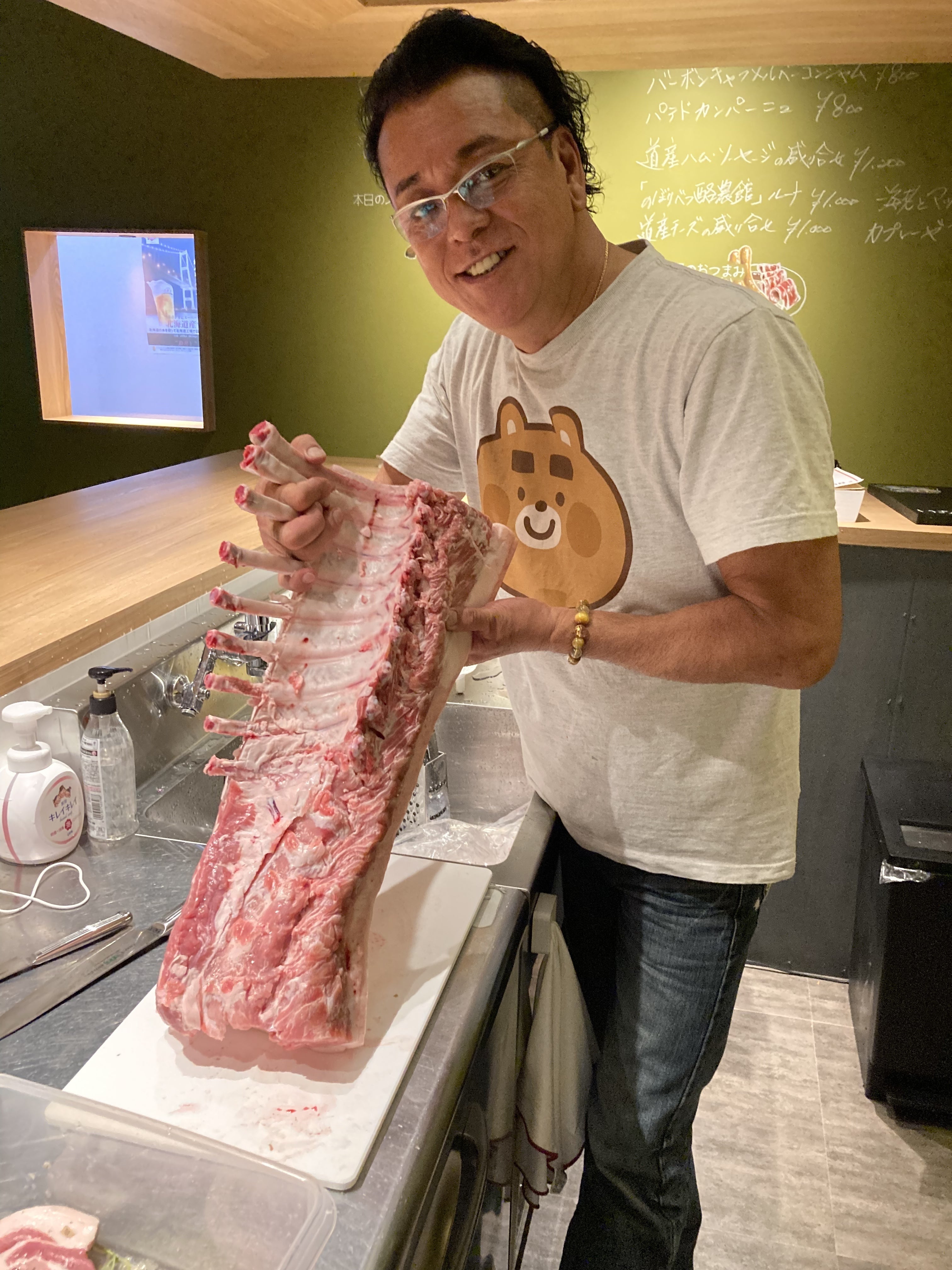 (休日に室蘭・八丁平にある田中ミートの熟成ポークチャップを仕込んでいる様子です)