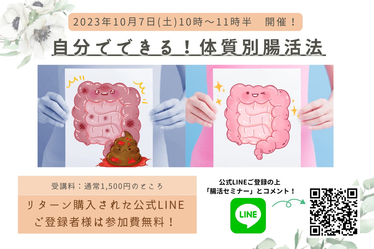 公式LINEから「腸活セミナー」とコメントしていただけると無料でご参加いただけます!