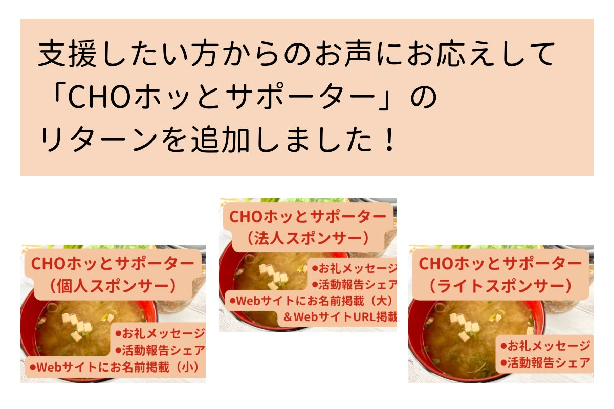 これまでにリターンを購入された方からの追加支援も大歓迎です!
