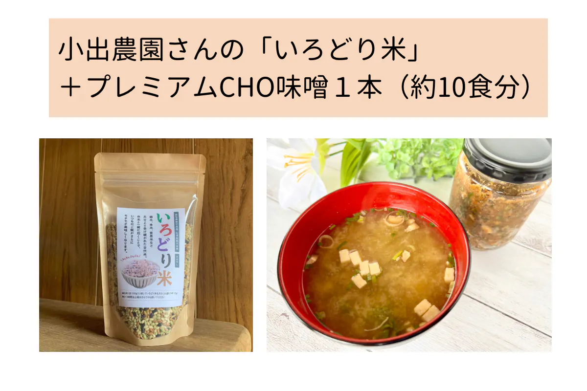 「いろどり米」を混ぜて炊いたご飯と「プレミアムCHO味噌」でより栄養バランスの良い朝食を取り入れてみてください♪