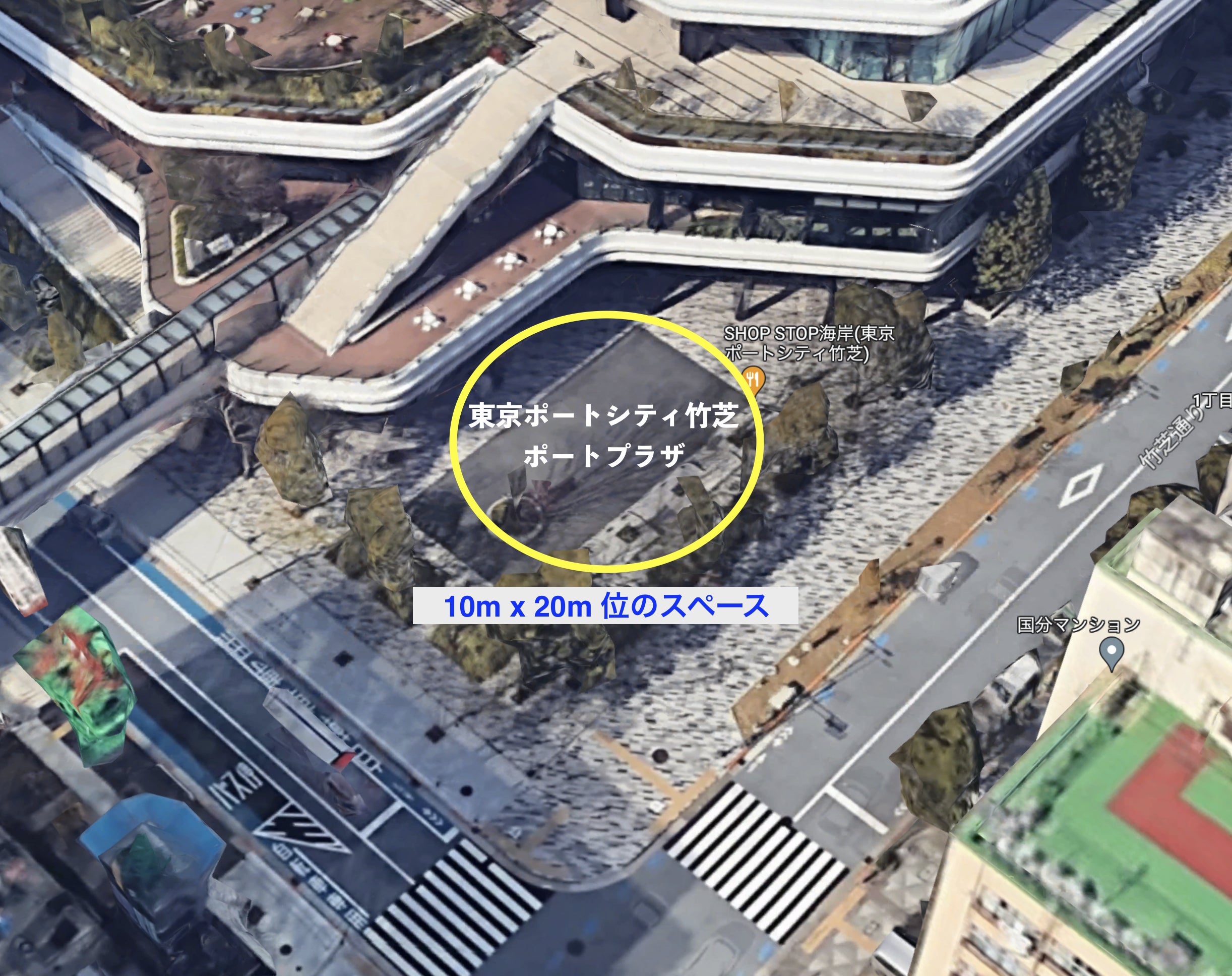 そのため、会場隣接の東京ポートシティ竹芝 ポートプラザを借りて、巨大なインコバルーンを3体展示するという計画になりました。