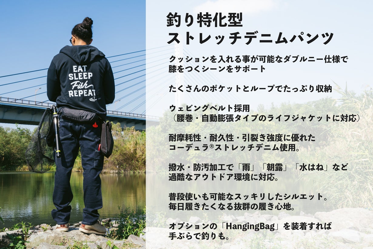 ユーザーの意見を取り入れ、さらに進化。「コーデュラ®ストレッチデニム」を使用した「釣り特化型パンツ」がラインナップに加わります。