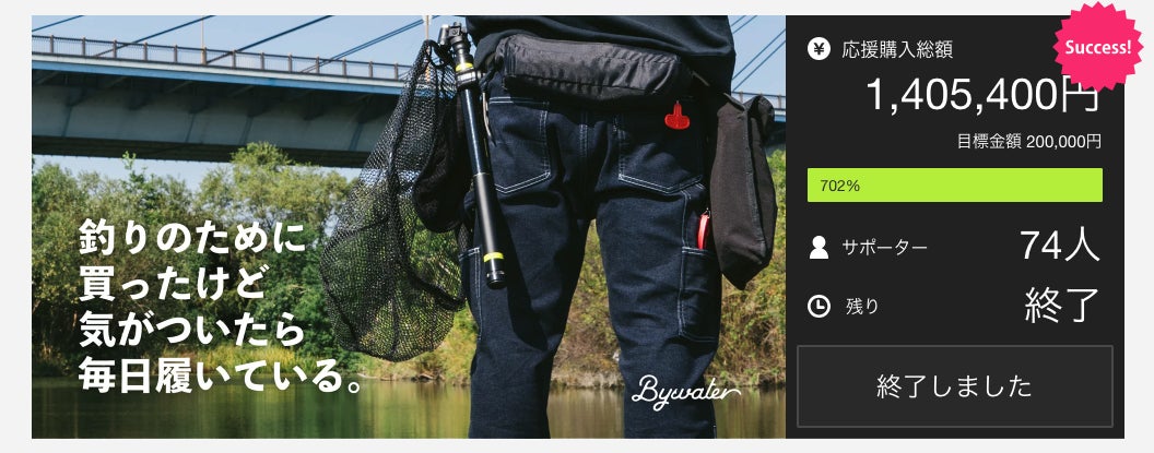 また、お眼鏡にかなわず「支援」まで至らなくても、釣りが好きな友人などに「こんなプロジェクトがあるんだよ」「こんなパンツがあったよ」「こんなブランドがあるんだよ」とSNSなどで、拡散してただけると幸いです。