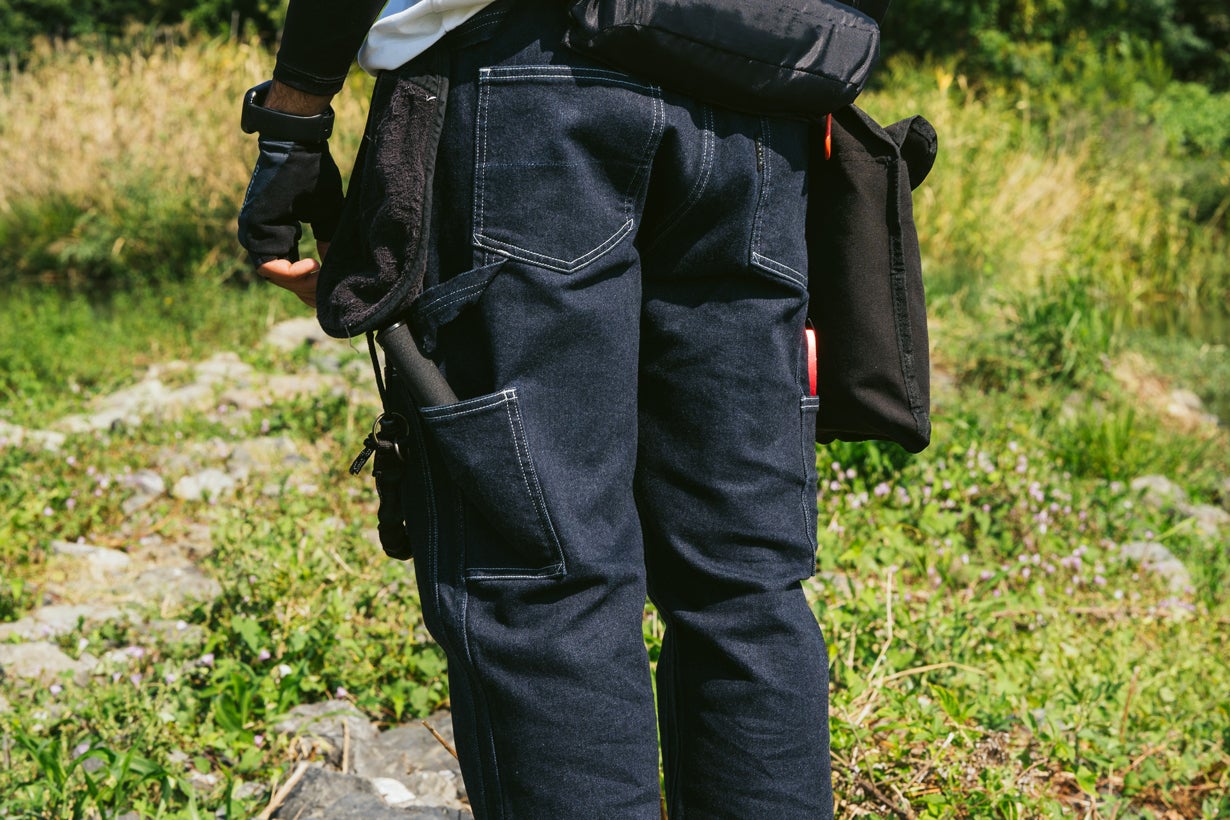 道無き道を藪漕ぎしてポイントへ移動するランガンスタイルに最適。※Fisherman's Stretch Denim Workpants|KIGEN(ORI-St)着用