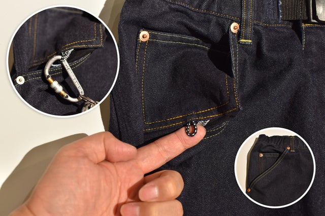 うっかり落としたくない「カギ」などを、ポケットの中でカラビナなどでつけることが可能。