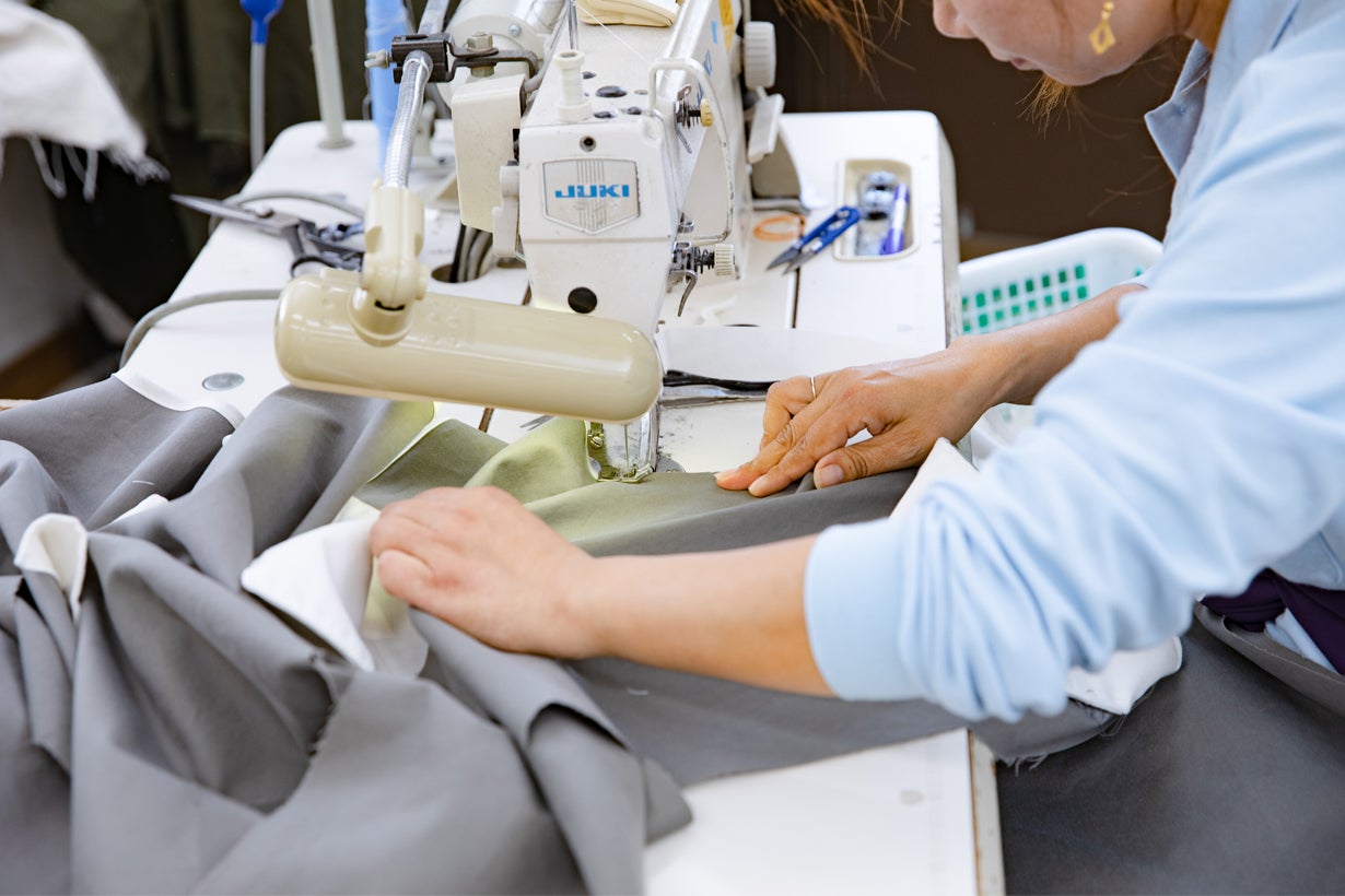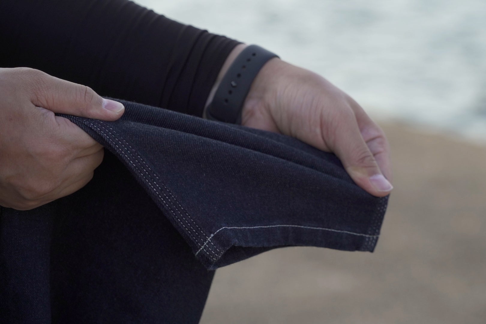 さらに、強度を上げるために、一般的に大股(内側)か脇側のどちらかが簡略化されたインターロック仕様が多いところ、合わせの部分全て(尻、脇、内股)を巻縫い仕様にし、「デニムの本場」広島県福山市のジーンズやカジュアルボトムスの生産を得意とする縫製工場で縫い上げました。