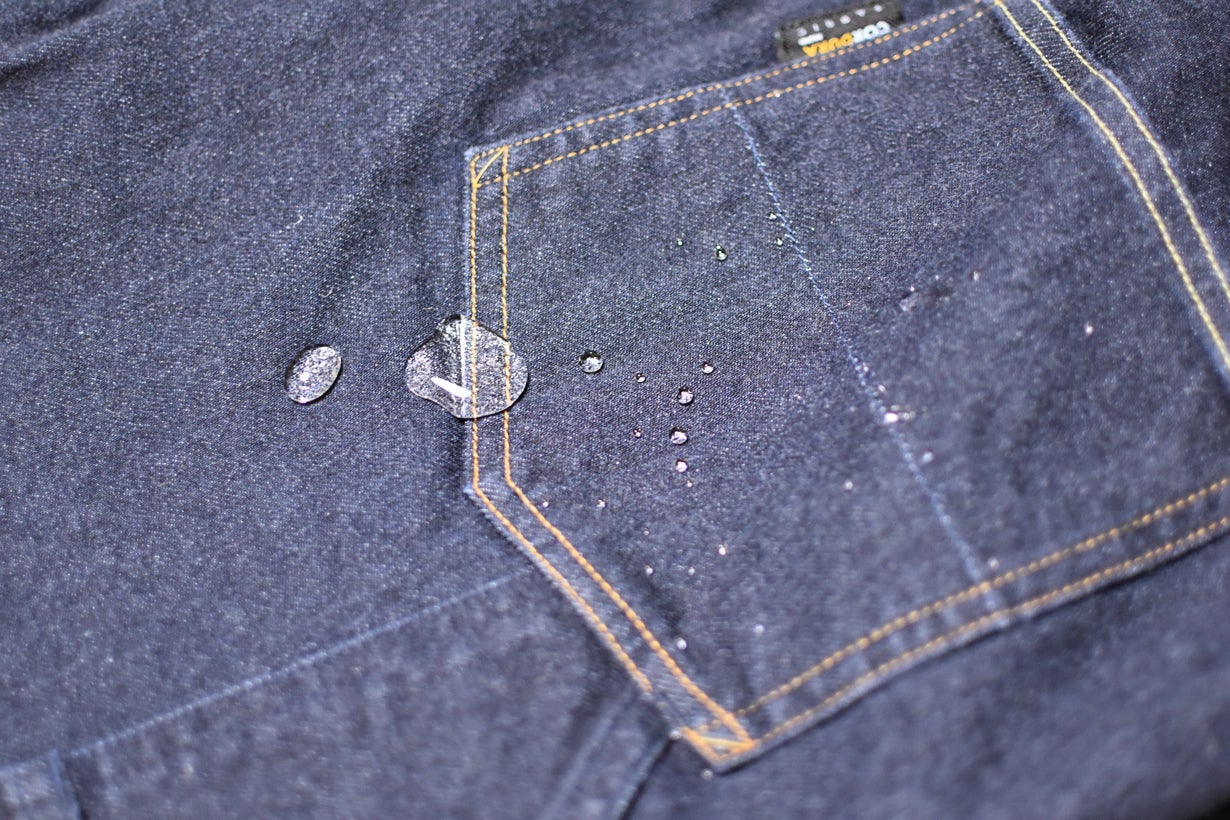 以前にリリースしております「(ストレッチではない)コーデュラ®デニム」の開発時から、コーデュラ®ストレッチデニムへの撥水加工を試しておりましたが、思ったような数値が出せず、「(ストレッチではない)コーデュラ®デニム」を先行リリースしておりましたが、撥水加工を行う会社を変更して開発を進め今回実現に至りました。