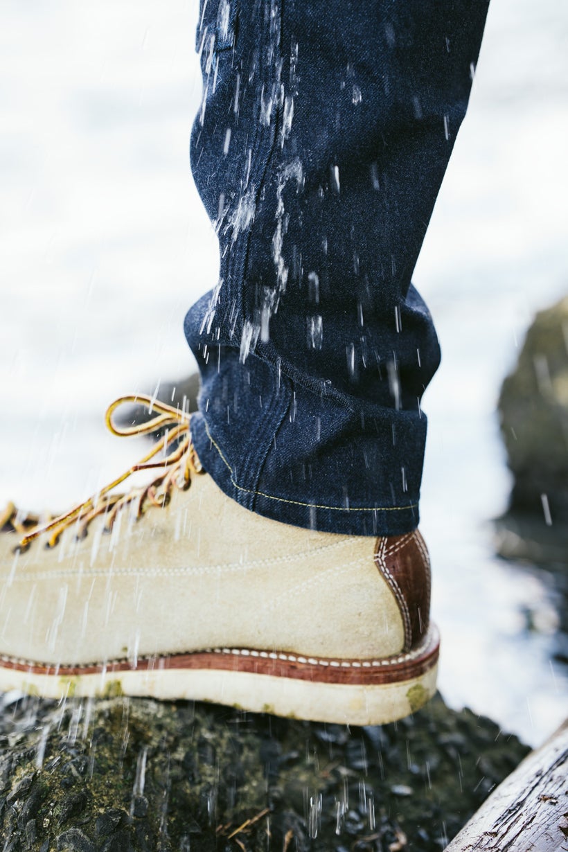 水がはねてもしっかりと弾きます。※Fisherman's Stretch Denim Workpants|KAKUSHI(NTP-St)着用