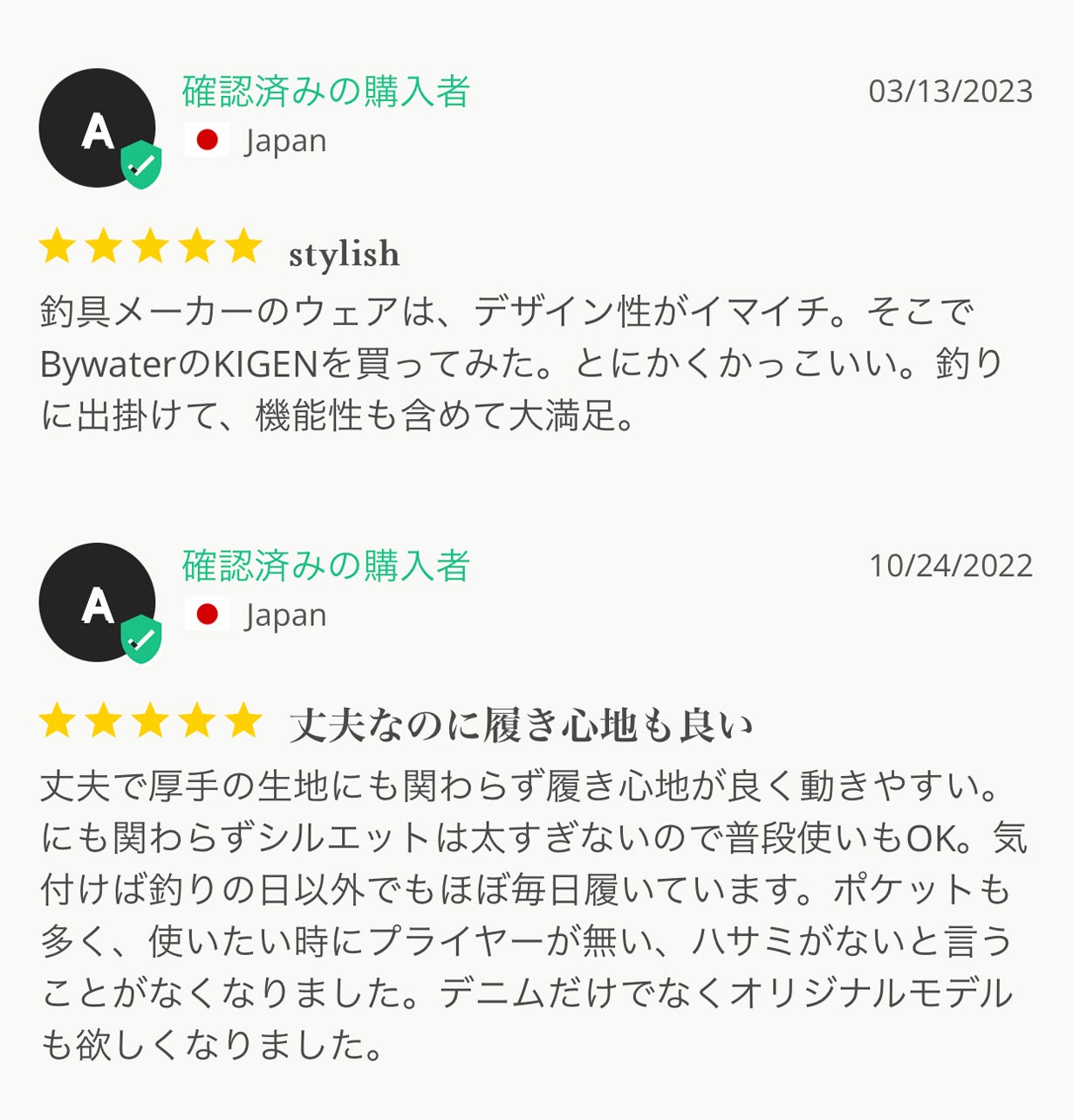 また、コーデュラ®️ナイロンのオリジナルモデルの「釣り特化型パンツ」や(ストレッチではない)コーデュラ®️デニムの「釣り特化型デニム」でも、「履き心地がよくてこればかり履いている」という意見をたくさんいただいております。