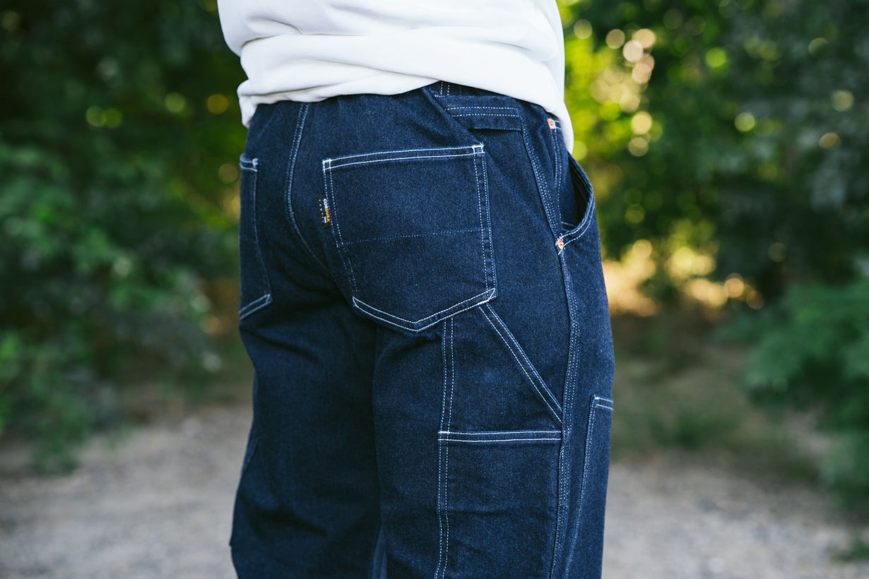 ペインターパンツは元々膝の部分を強化するためにダブルニー(生地を2枚重ね)である事が多いのですが、下の部分からウレタンなどのクッションを入れる事ができるようにすることで、膝をサポートします。しかも「12oz(12オンス)」のしっかりしたデニム生地なので、さらに安心感があります。