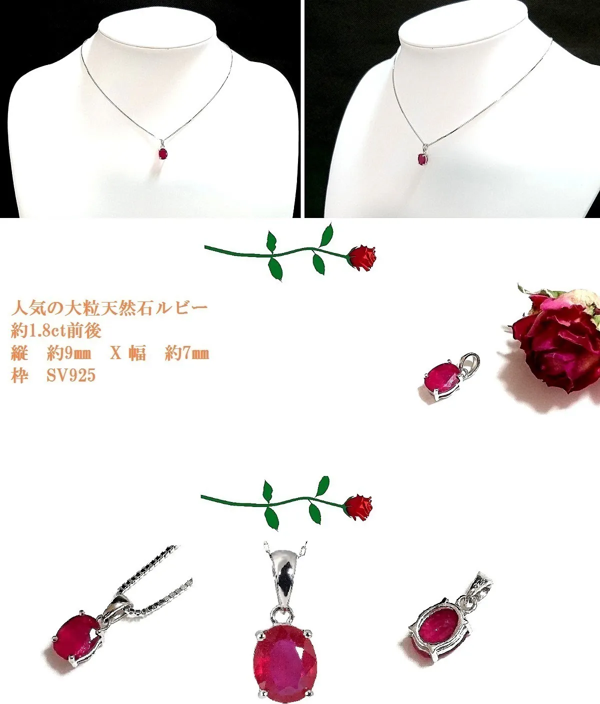 ☆~人気の天然石ルビーペンダント~大粒の天然石ルビーペンダント(約1.8ct)とネックレス付
