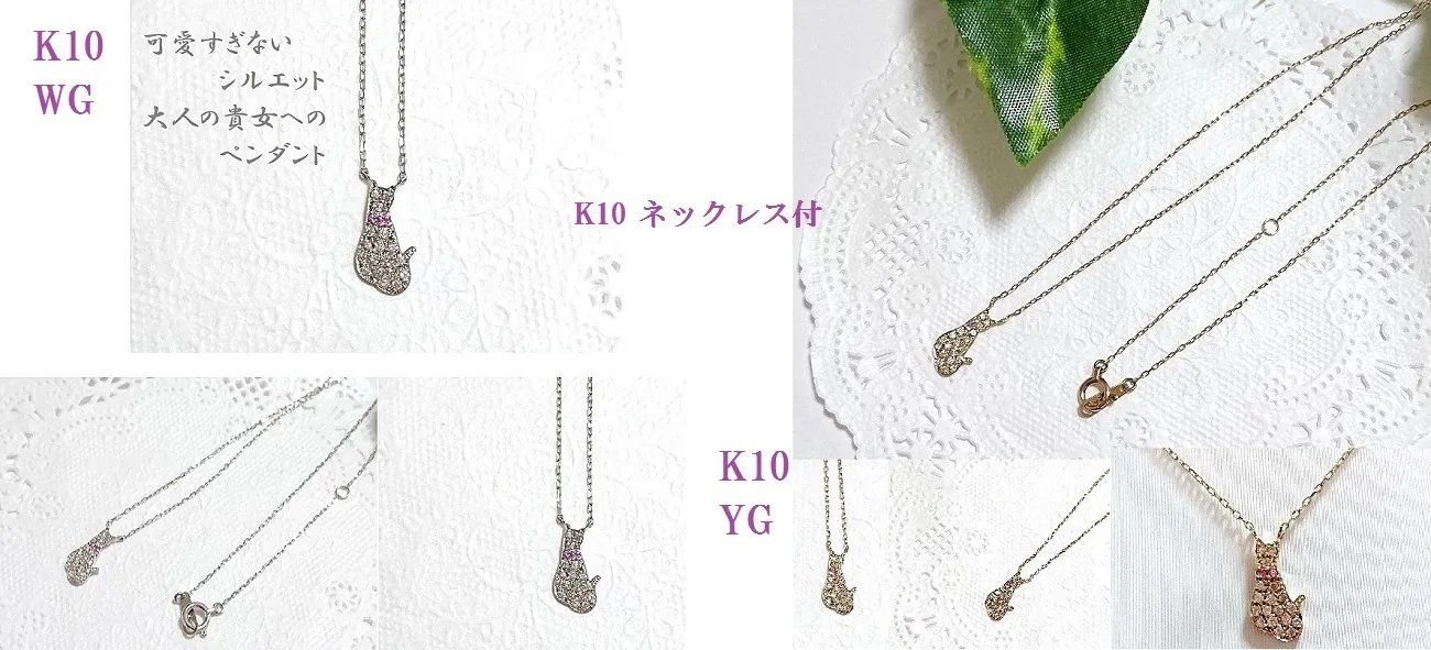 ☆ピンクサファイアとメレダイヤモンドの K10金ペンダントホワイトゴールドとイエローゴールドの2種類