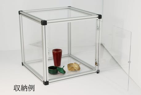 アクリルコレクションボックス:このコレクションボックスがあればコレクションを傷つけることがなく、見栄え良く飾ることができます。コレクションボックスは使わなくなった富山県内のアクリルパネルをアップサイクルして作ったものなので、環境にも優しく、安心してお使いいただけます。(サイズ:W330×H330×奥行き330mm)