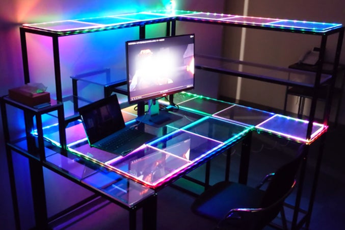 よりゲームの世界に没頭できるよう机を好みの色に光らせることができます。透明な天板を採用しているため、幻想的でゲームの世界観にあった空間でゲームをお楽しみください。