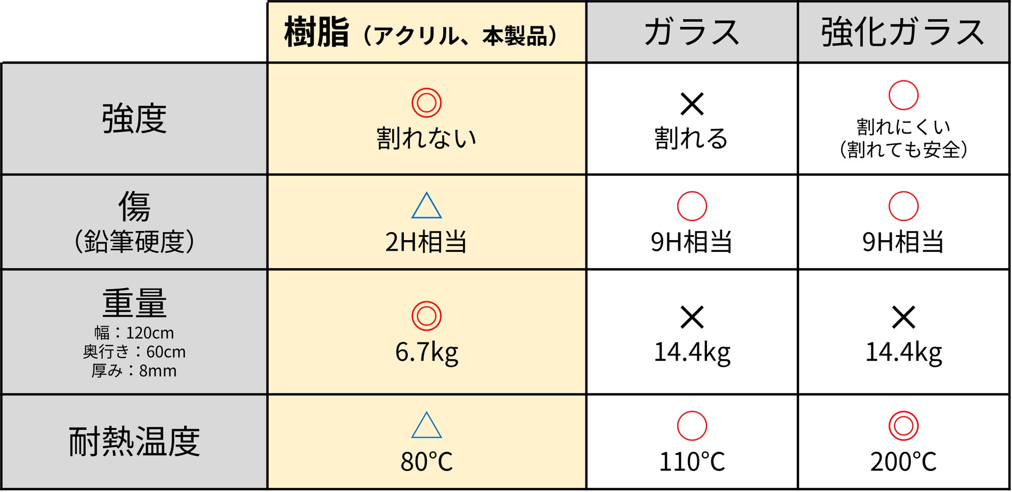 ・ガラス天板に物を置いた時に鳴る「カツン」という嫌な音も鳴りません。