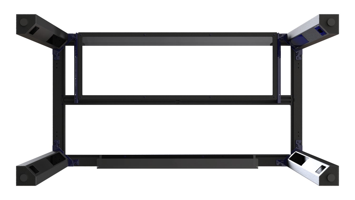 アルミフレームを採用することで、軽量ながらも強固な耐荷重を実現しています。また、フレーム下部にT型スロットを設けており、そこにモジュールはめ込むことでこだわりデスクを実現することができます。