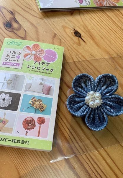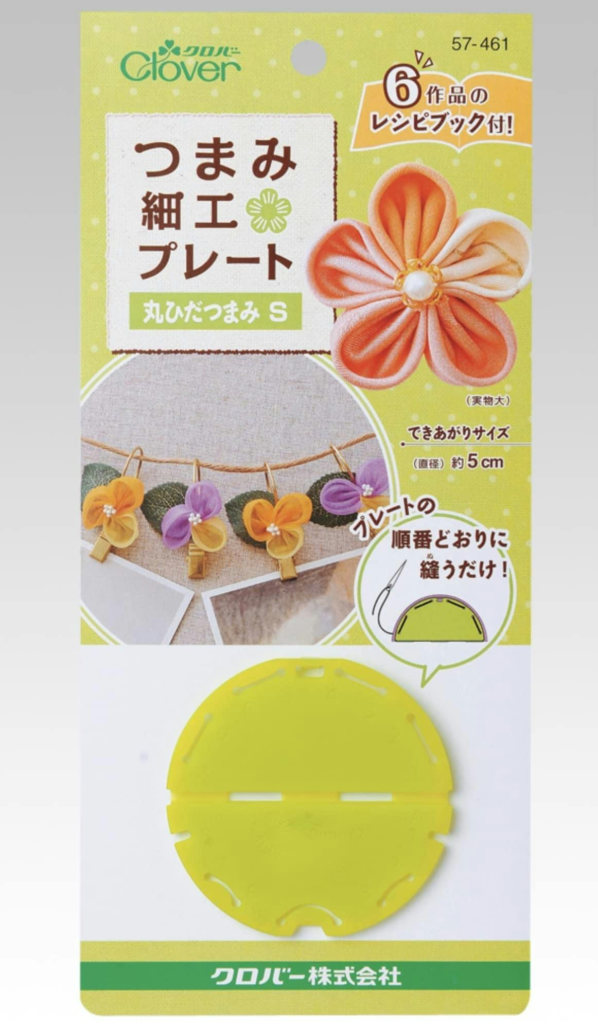 つまみ細工は、日本の伝統工芸のひとつです。小さな布を『折って』『つまんで』『組み合わせて』つくります。クロバーの『つまみ細工プレート』を使う事で、針と糸で、本格的なつまみ細工のような、布飾りを作ることができます。針と糸が使える方でしたら、どなたでも作れますので、是非、皆さんにも作っていただきたいです。