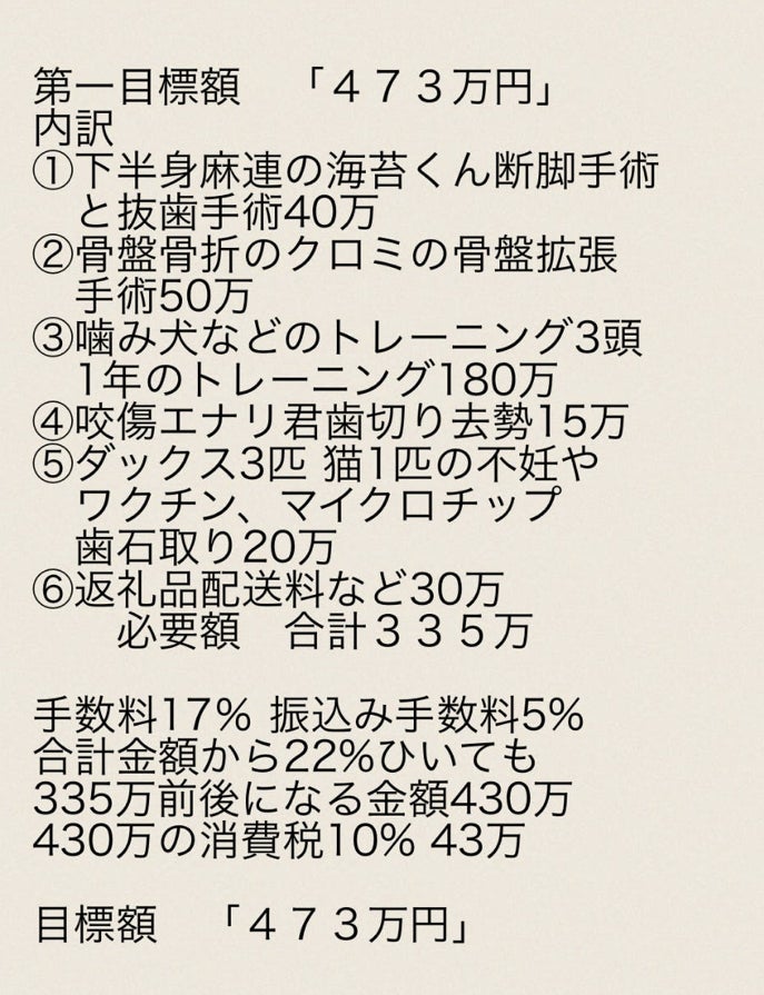 もし余った場合は他の子の医療費として使わさせて頂きます