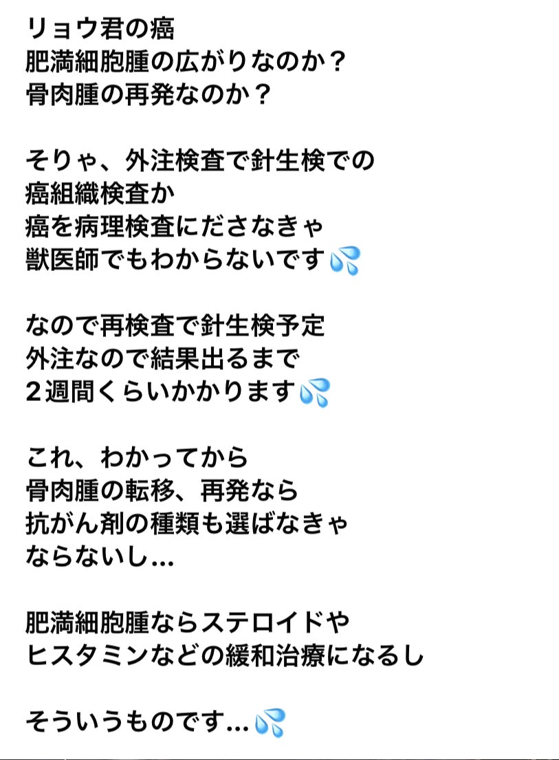 肥満細胞腫ができて、その患部を取り除く手術予定でしたが