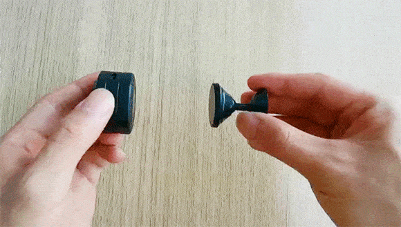 磁石が内蔵され、カメラとスタンドの間には磁気で連結します。近づけるとパッと一瞬で吸着!スタンドの底側のフィルムを剥がし、壁に貼り付けて設置完了です。