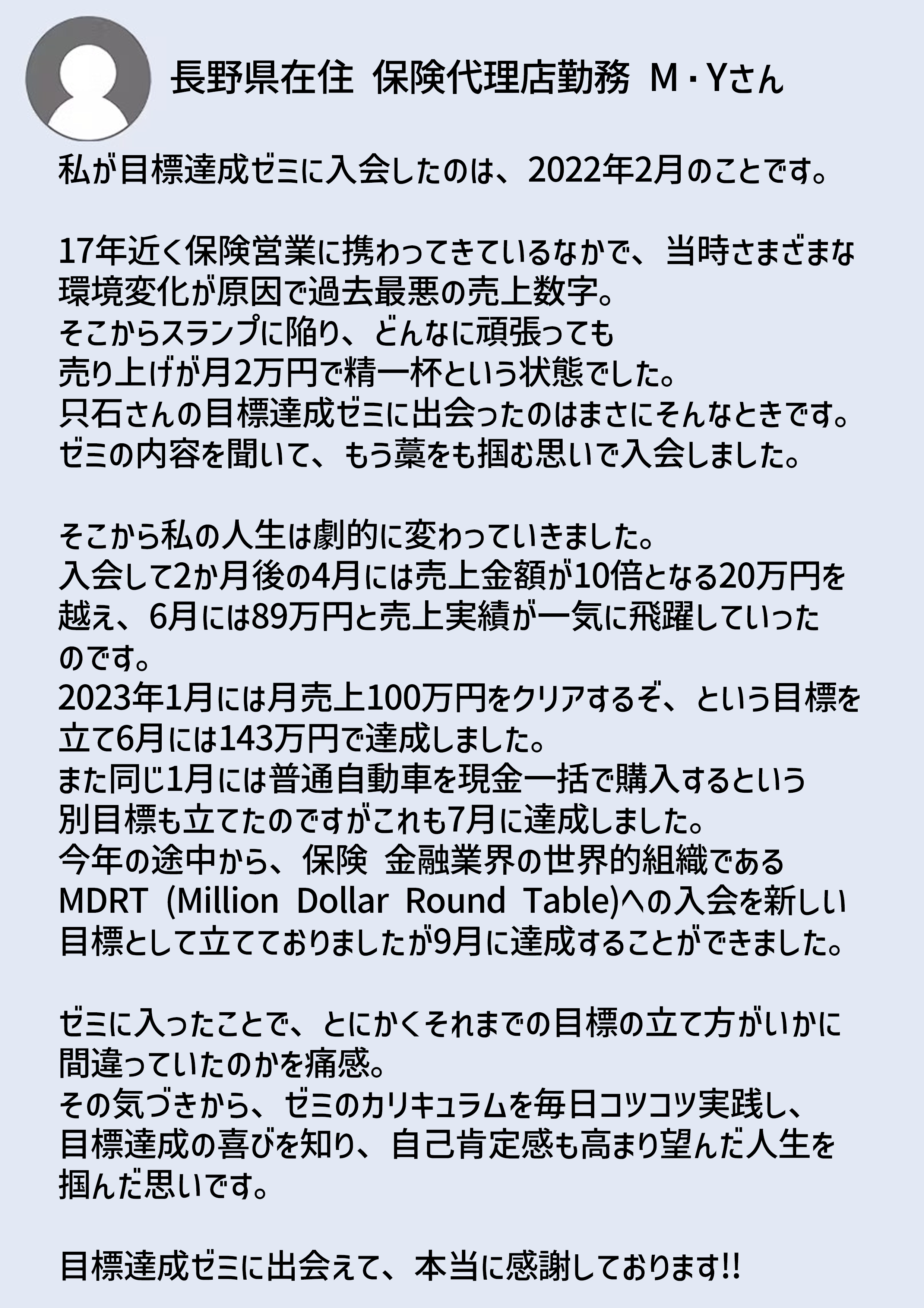 「この境遇から脱却する」という目標を果たすことができました。