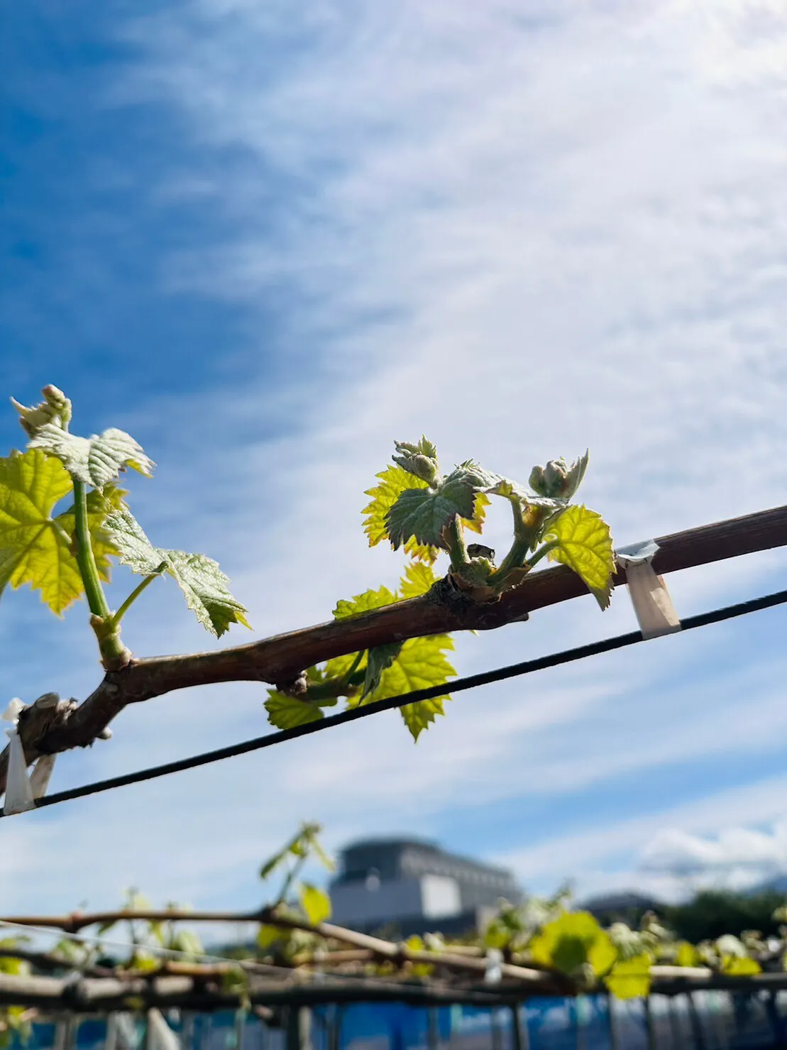 長梢剪定は機械的に2〜3芽のみを残して切り落とす短梢剪定に比べて、枝の太さなどを確認しながら剪定するため経験と労力が必要となります。しかし、その分良い枝のみを残していくことで良いブドウ作りが可能です。