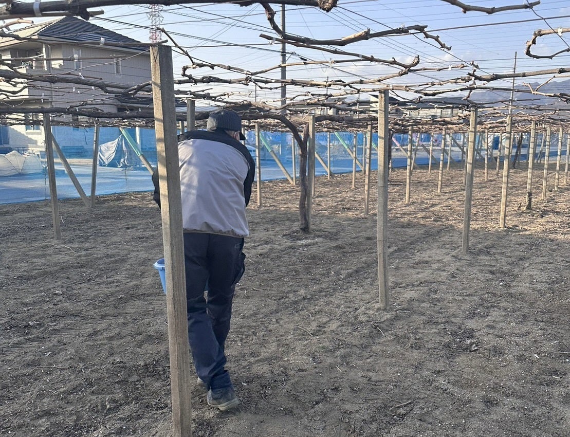 毎年、秋に土壌検査をすることからシャインマスカット作りは始まります。土壌は毎年変化していきます。最高の土壌にすることがシャインマスカットの育ちに繋がるため、毎年まずは検査を行い、検査結果に応じた肥料を与えています。