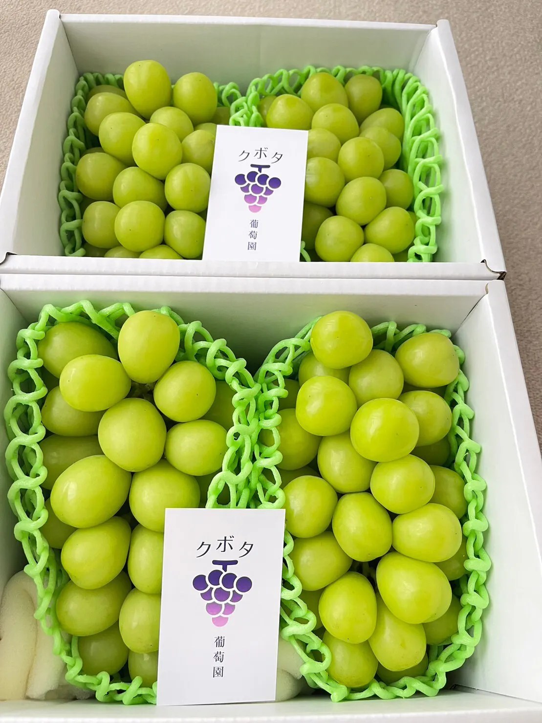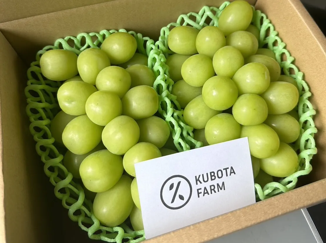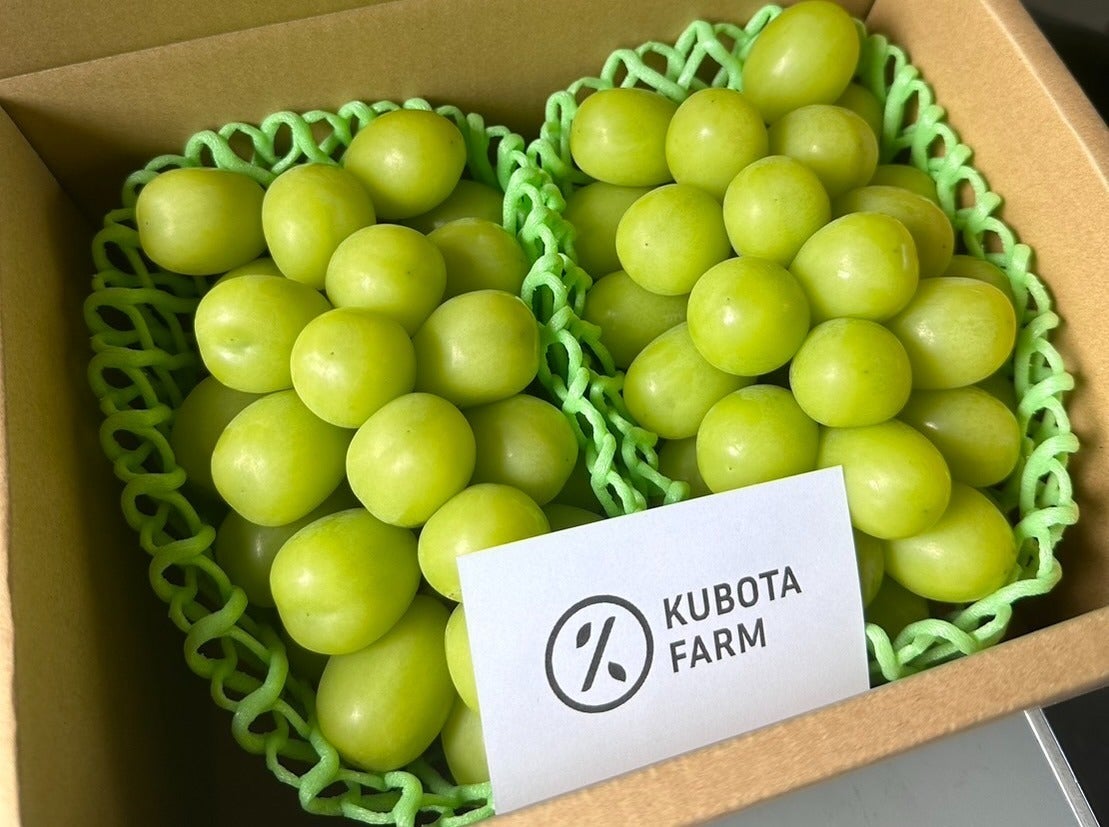山梨県甲府市の久保田農園で一年をかけてじっくり育てられ、甘くハリのあるシャインマスカットになっています!多く育てるのではなく、たった9本の樹を一本づつ丁寧に育てています。